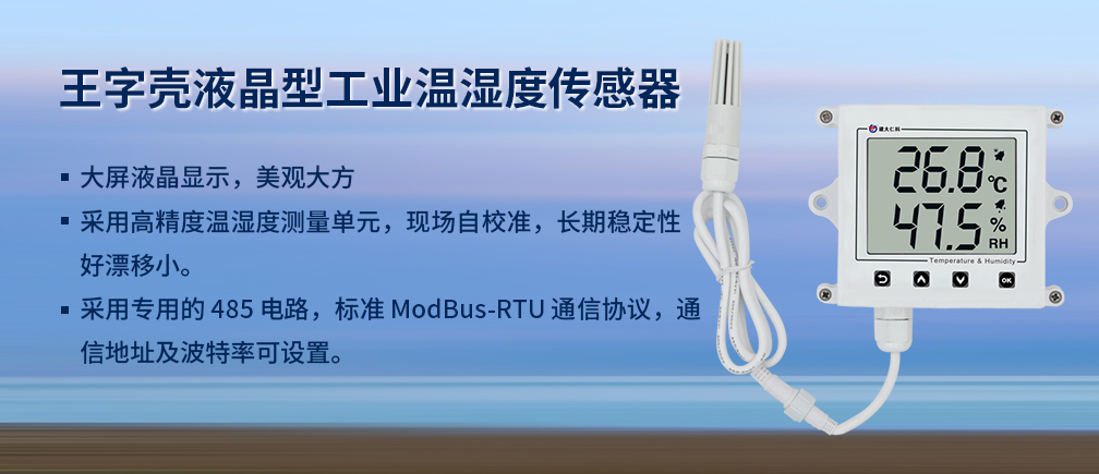 王字殼液晶型工業(yè)溫濕度傳感器帶有液晶顯示,可以實時顯示溫濕度,產(chǎn)品采用標準MODBUS-RTU通信協(xié)議,RS485信號輸出,通信距離最大可達2000米(實測)。探頭內(nèi)置、外延可選,廣泛適用于通訊機房、倉庫樓宇以及自控等需要溫濕度監(jiān)測的場所。安全可靠,外觀美觀,安裝方便。