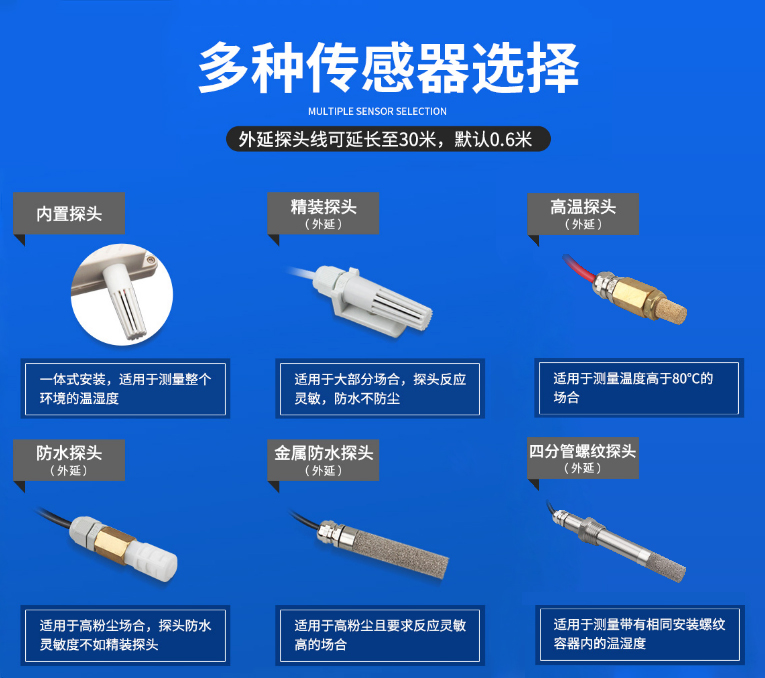 工業(yè)級溫濕度傳感器不同情形下,可使用不同的探頭