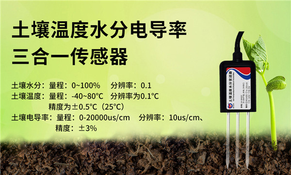 土壤溫度水分電導(dǎo)率三合一傳感器的殼體使用黑色阻燃環(huán)氧樹(shù)脂完全密封,采用三頭探針式外觀設(shè)計(jì),探針為采用特殊處理的合金材料制作的電極,耐酸堿腐蝕,能夠采集土壤含水率、電導(dǎo)率及溫度等三個(gè)參數(shù),響應(yīng)快,精度高,互換性好,內(nèi)置溫度補(bǔ)償傳感器,補(bǔ)償范圍 0-50℃。